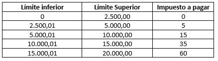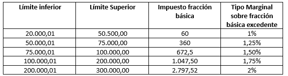Ambos grupos deben declarar y pagar el impuesto según la tabla progresiva correspondiente a sus ingresos brutos del ejercicio fiscal respectivo. Por ingresos brutos se entienden los ingresos gravados percibidos por el contribuyente, menos descuentos y devoluciones.