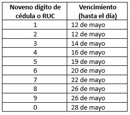 Las personas naturales que pertenecen al régimen RIMPE deberán declarar y pagar su Impuesto a la Renta, según el siguiente calendario: