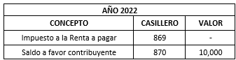 Si quieres recuperar tu crédito tributario por pago indebido o pago en exceso del Impuesto a la Renta, es necesario registrar el valor del crédito tributario de años anteriores. A continuación, se presenta un ejemplo de como deben ser empleado estos casilleros:
