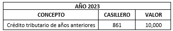 Para el año 2023 el crédito tributario resultante debe ser trasladado de la siguiente manera: